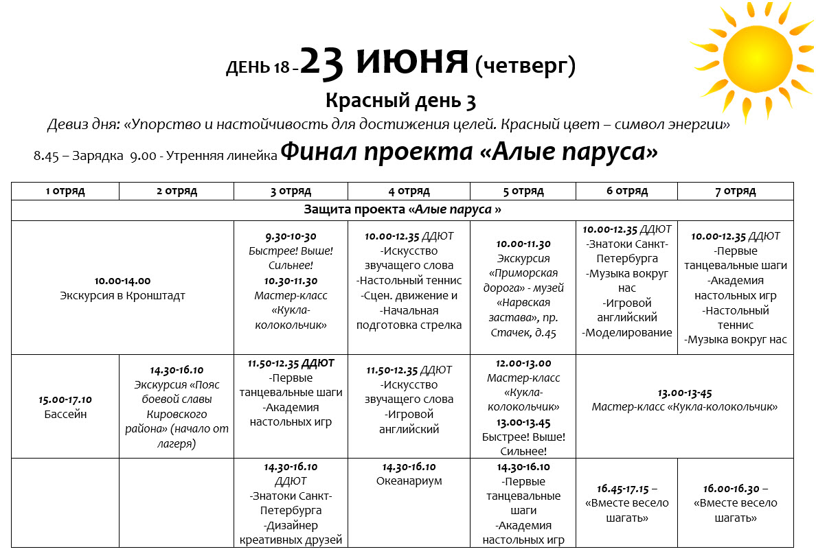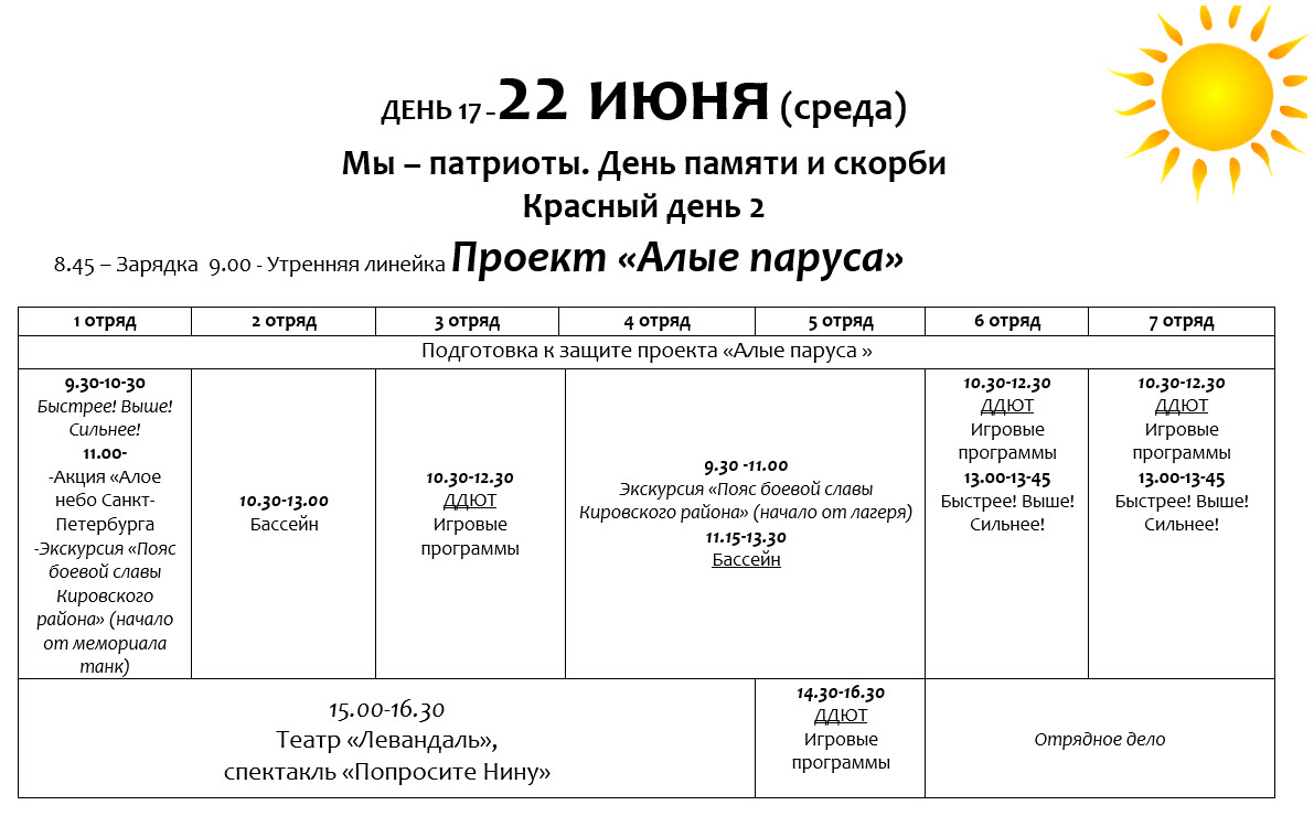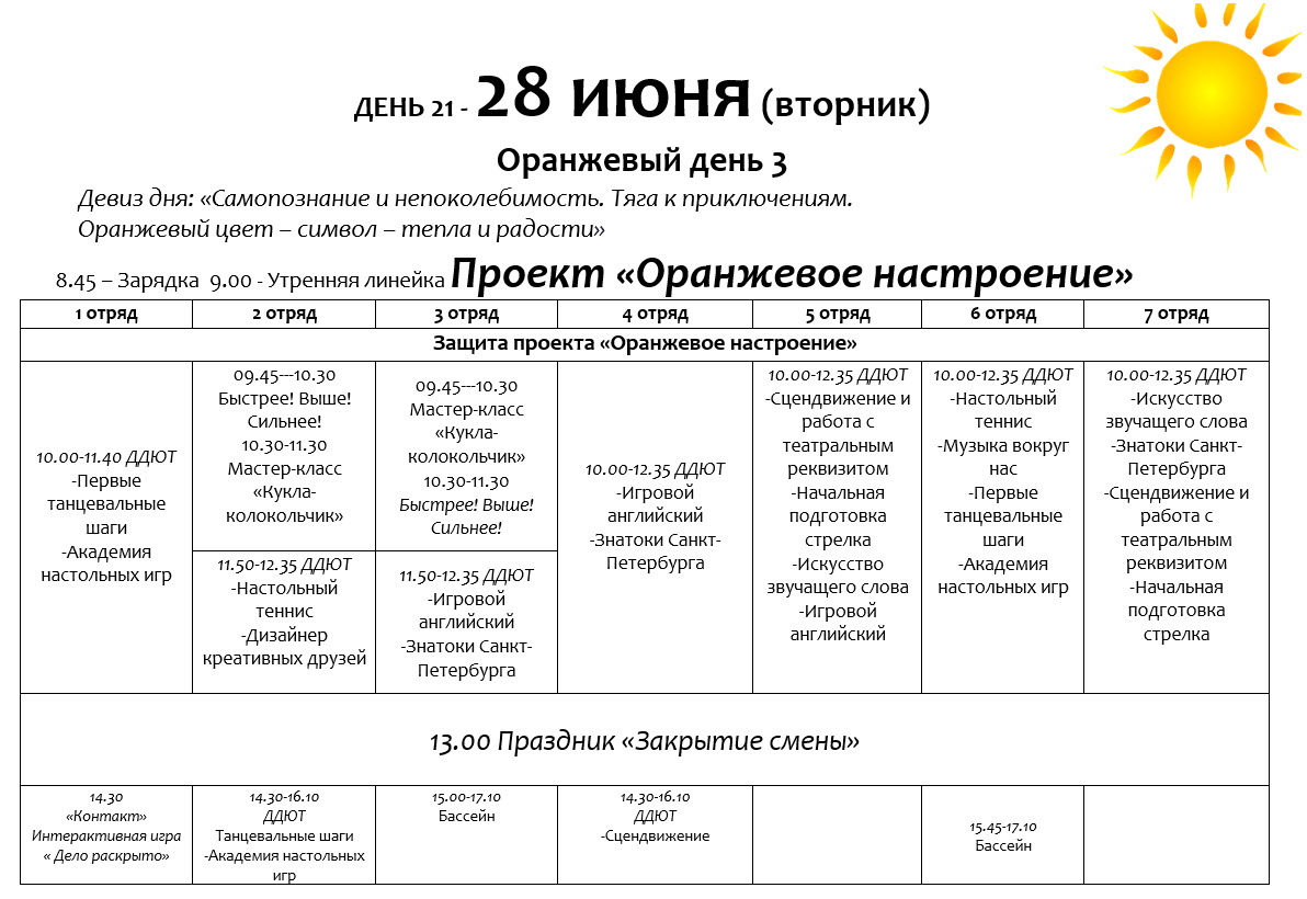 28 июня 2022 года в городском оздоровительном лагере ГОЛ «Солнышко» при ГБОУ «Гимназия №261» состоялся торжественный гала-концерт, посвящённый закрытию лагерной смены «Яркие краски детства». В ходе концерта каждый отряд показал свои лучшие выступления летней смены и подготовил яркие новые. В своих выступлениях ребята показали, чему научились за 21 день лагеря, танцы, песни, а некоторые даже поставили сценку, посвящённую жизни отряда в эту лагерную смену. Выступления вожатского отряда были встречены детьми с особым восторгом, вызвали бурю эмоций и громкие аплодисменты. Смена лагеря «Солнышко» завершилась шоу, салютом из мыльных пузырей.